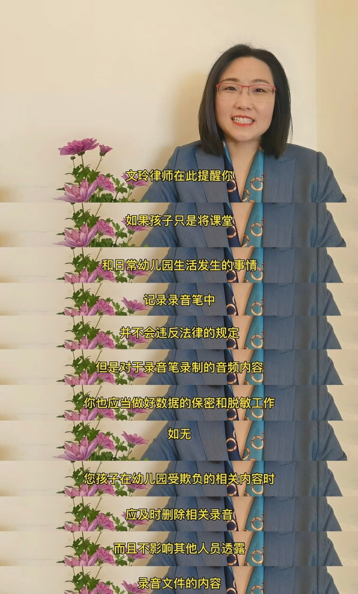 她就理直气壮地跟园长说:我看到律师讲了给孩子带录音笔也没犯法,只要我不拿这里面的录音去干嘛?如果没有任何的问题,我也会把它删了,如果你们不心虚,为什么不让我带录音笔来学校呢……
